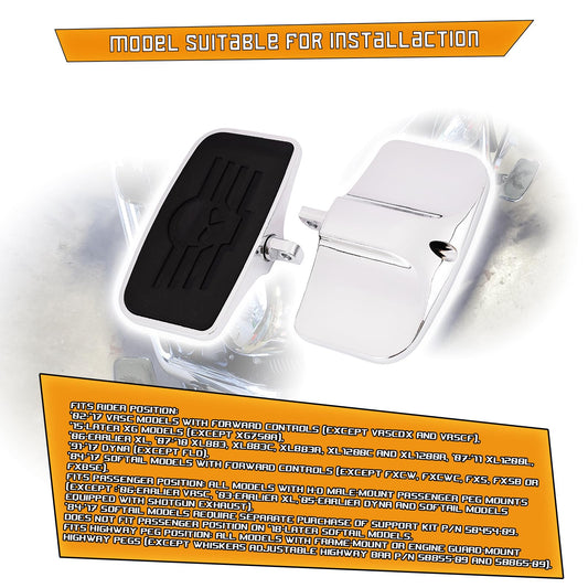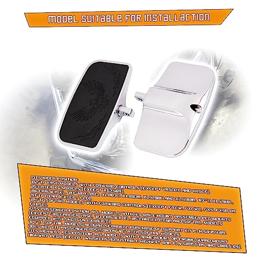 Kinglemc Front Rider Rear Passenger Position Floorboards Footboard Footpeg for Harley Dyna Touring Softail Sportster 883 1200 (Eagle 7.2 * 2.5", Silver)