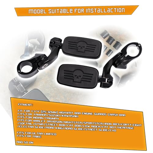 Kinglemc Highway Peg Footpeg Fit 1.25" Adjustable Engine Guard Crash Bar for Harley Davidson, Honda, Yamaha, Kawasaki, Suzuki, Indian, Triumph, Motorcycle(Black-Skull)