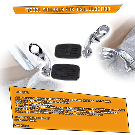 Kinglemc Highway Peg Footpeg Fit 1.25" Adjustable Engine Guard Crash Bar for Harley Davidson, Honda, Yamaha, Kawasaki, Suzuki, Indian, Triumph, Motorcycle(Silver-Skull)