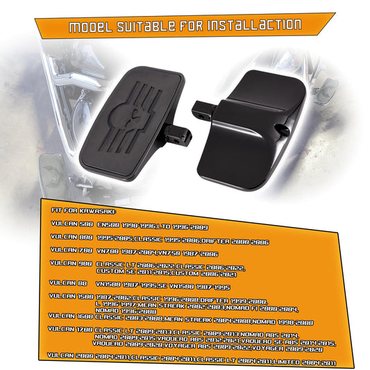 Kinglemc Chome Front Rear Rider Passenger Floorboard FootPeg for Kawasaki (Skull 7.9 * 4.5", Black)