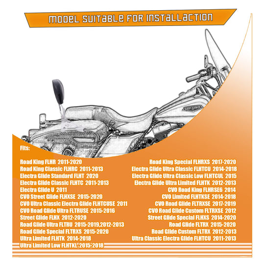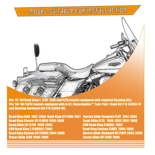 Kinglemc Sissy Bar Passenger Backrest for Harley Davidson Touring Road King Street Glide Road Glide Electra Glide (Fit for 1997-2008 Touring-Non-Adjustable, Black,Non-Studded)