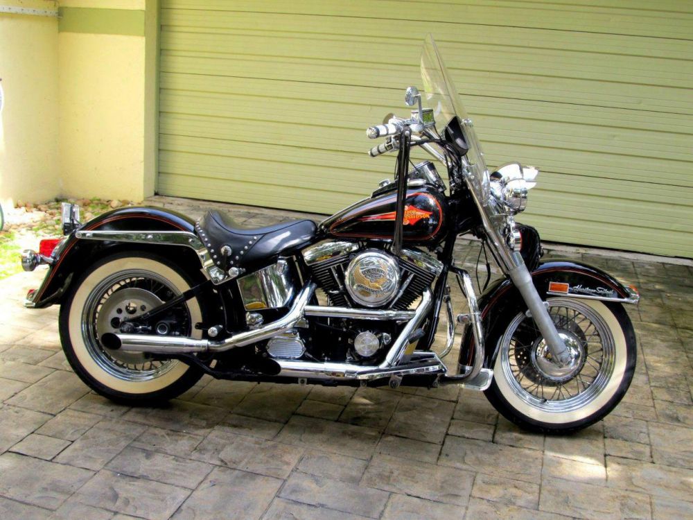 Gamyipp 1.5" Fat Crash Bar Engine Guard Highway Bar for Harley Softail Heritage Springer FLSTS 1993-1999 (Black)