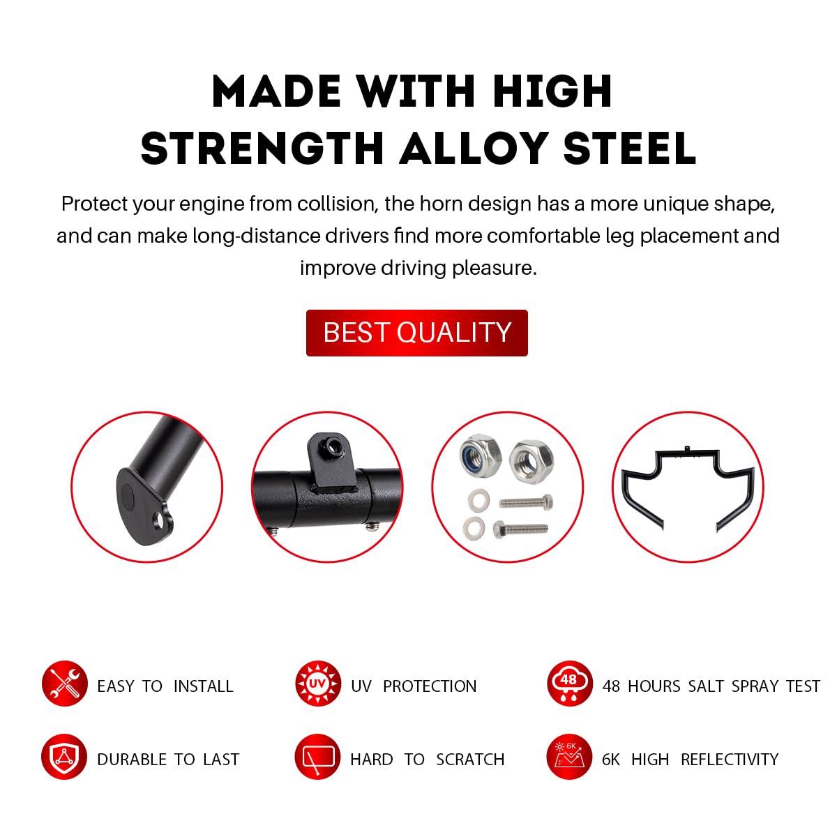 - ◆FEATURES - The Crash Bar Engine Guard Highway Bar material is a 1-1/4″ steel tube that is thicker than most sellers. All screws are 304 stainless steel.