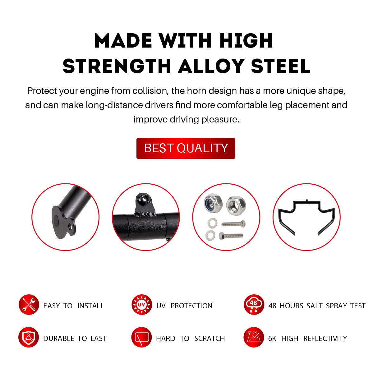 - ◆FEATURES - The Crash Bar Engine Guard Highway Bar material is a 1-1/4″ steel tube that is thicker than most sellers. All screws are 304 stainless steel.