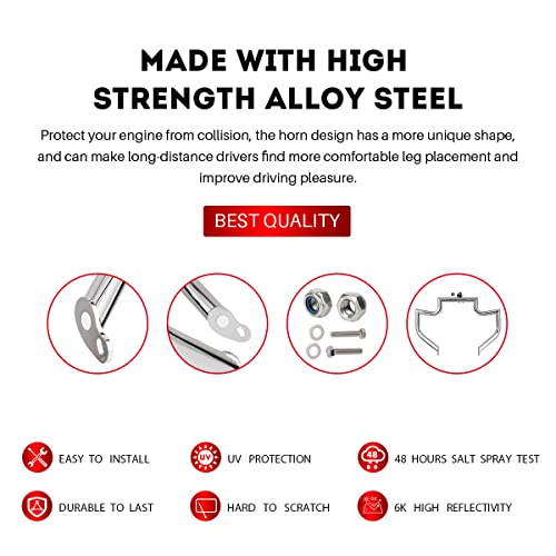 - ▶FEATURES- The engine guard highway crash bar material is a 1.5″ steel tube that is thicker than most sellers. All screws are 304 stainless steel.
