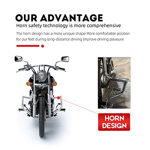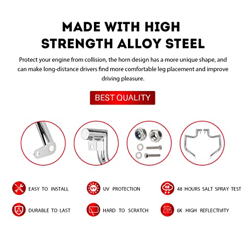 - ▶FEATURES- The engine guard highway crash bar material is a 1.5″ steel tube that is thicker than most sellers. All screws are 304 stainless steel.