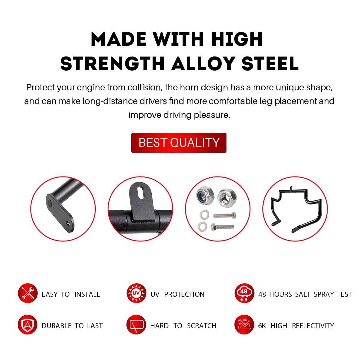 - ◆FEATURES - The Crash Bar Engine Guard Highway Bar material is a 1-1/4″ steel tube that is thicker than most sellers. All screws are 304 stainless steel.