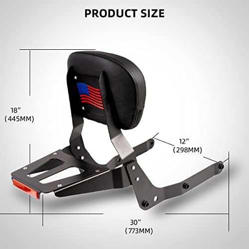 Gamyipp Powersports Sissy Bar with Backrest Flag Pattern Luggage Rack for Honda Shadow Aero VT 750 VT750CS 2004 to 2020 (Black)