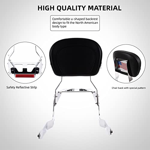 - ★FEATURES -The backrest provides great support for rear passengers and improves riding comfort on long touring. The chrome luggage with reflective strips allows you to drive safely in the dark. The Sissy bar material is steel, all screws are 304 stainless steel.