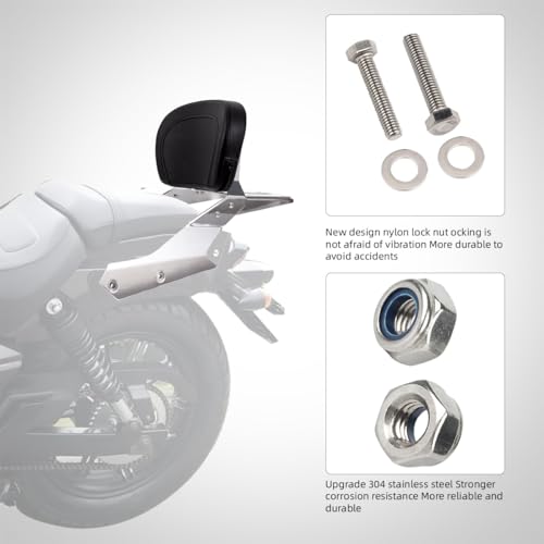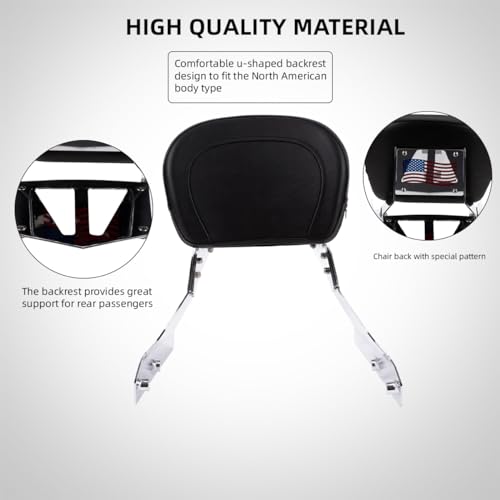 - ★FEATURES -The backrest provides great support for rear passengers and improves riding comfort on long touring. The Sissy bar material is steel, all screws are 304 stainless steel.