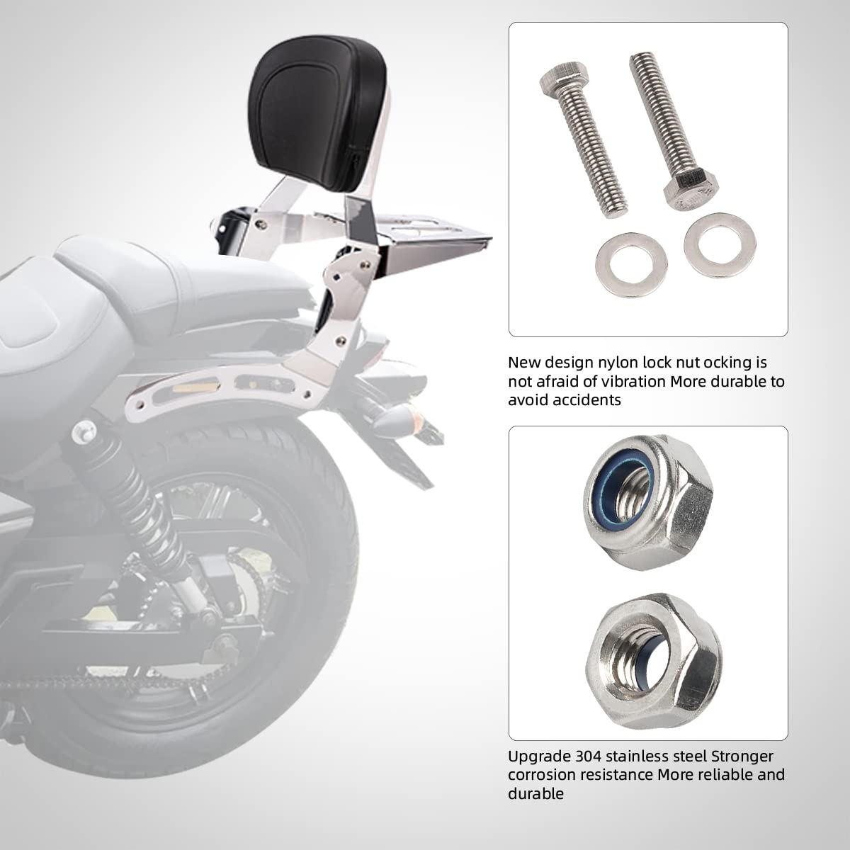 - ★FEATURES -The backrest provides great support for rear passengers and improves riding comfort on long touring. The chrome luggage with reflective strips allows you to drive safely in the dark. The Sissy bar material is steel, all screws are 304 stainless steel.