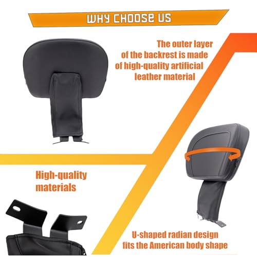 - ➤FEATURES -The Adjustable Motorcycle Backrest can be moved up or down without any tools, so you will always have perfect support right where you need it and offers enhanced comfort for long hauls and custom styling.