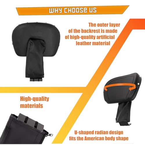 - ➤FEATURES -The Adjustable Motorcycle Backrest can be moved up or down without any tools, so you will always have perfect support right where you need it and offers enhanced comfort for long hauls and custom styling.