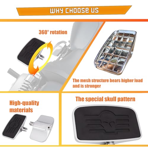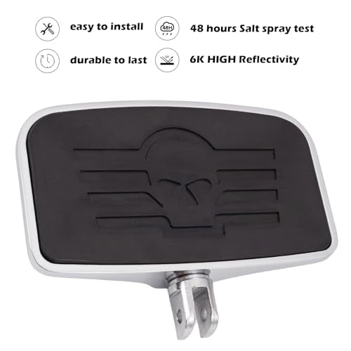 Kinglemc Front Rear Rider Passenger Floorboard FootPeg for Honda, Suzuki, Triumph,CAN-AM, Gold Wing (Skull 7.9 * 4.5", Silver)