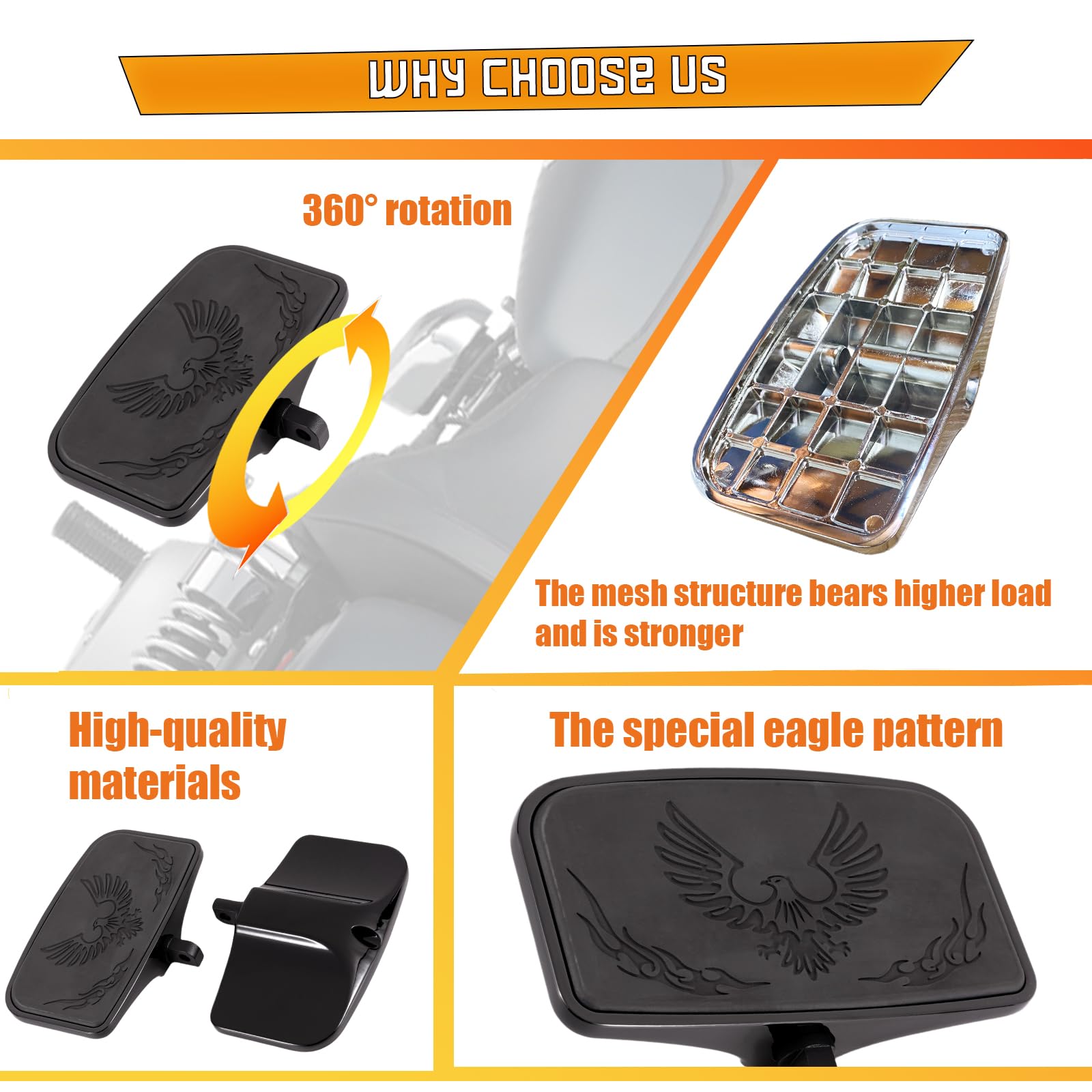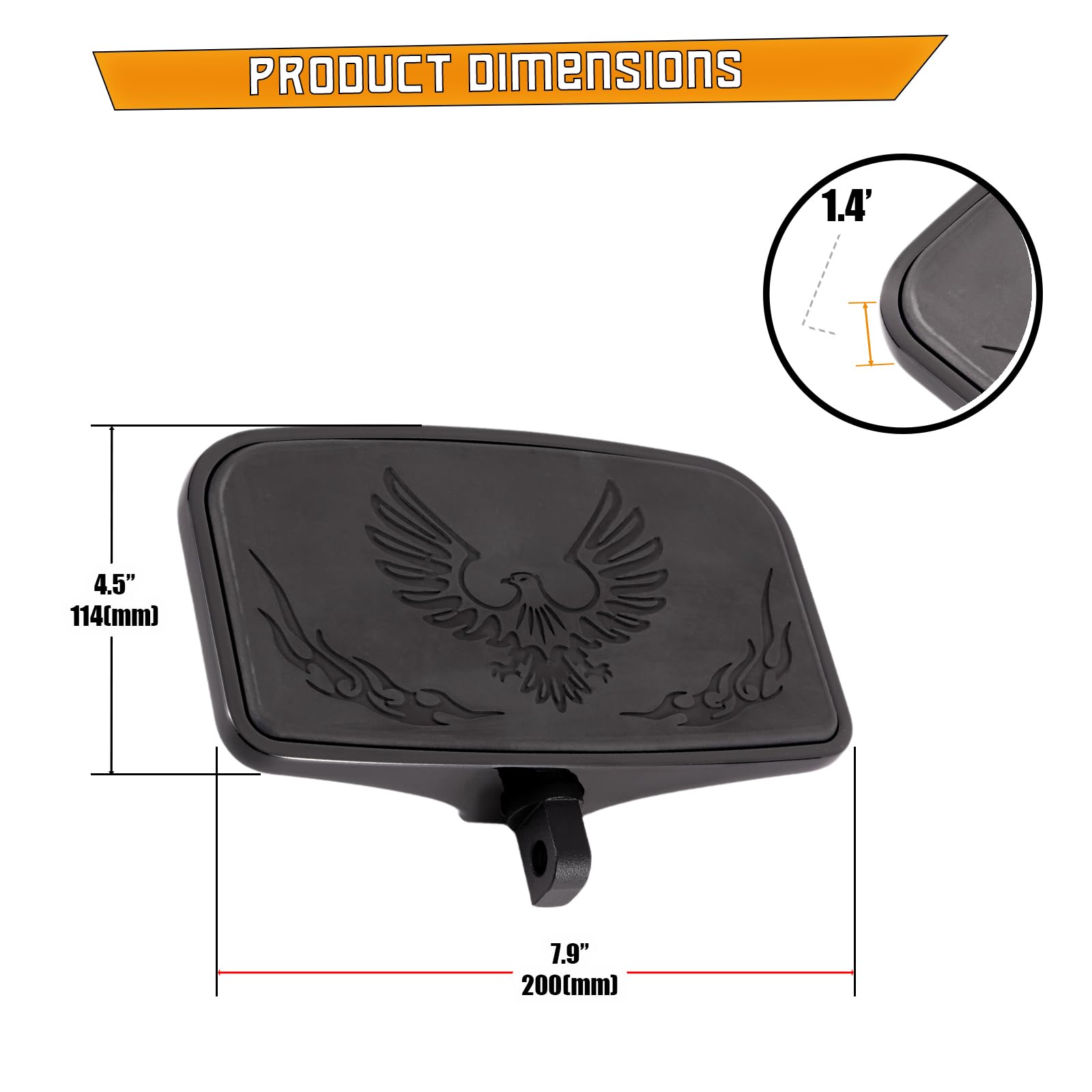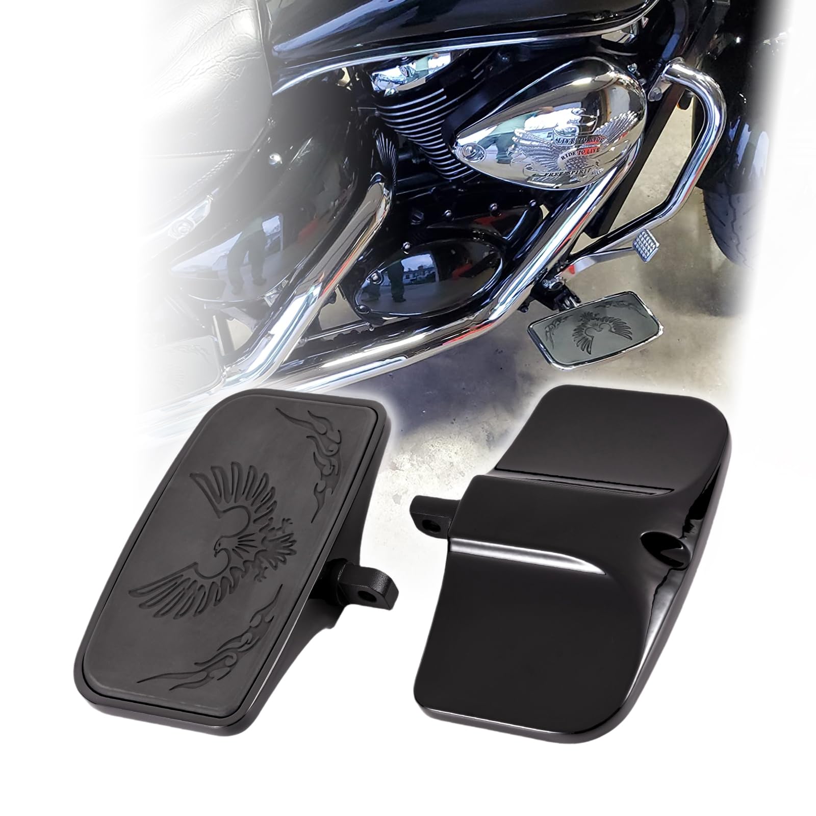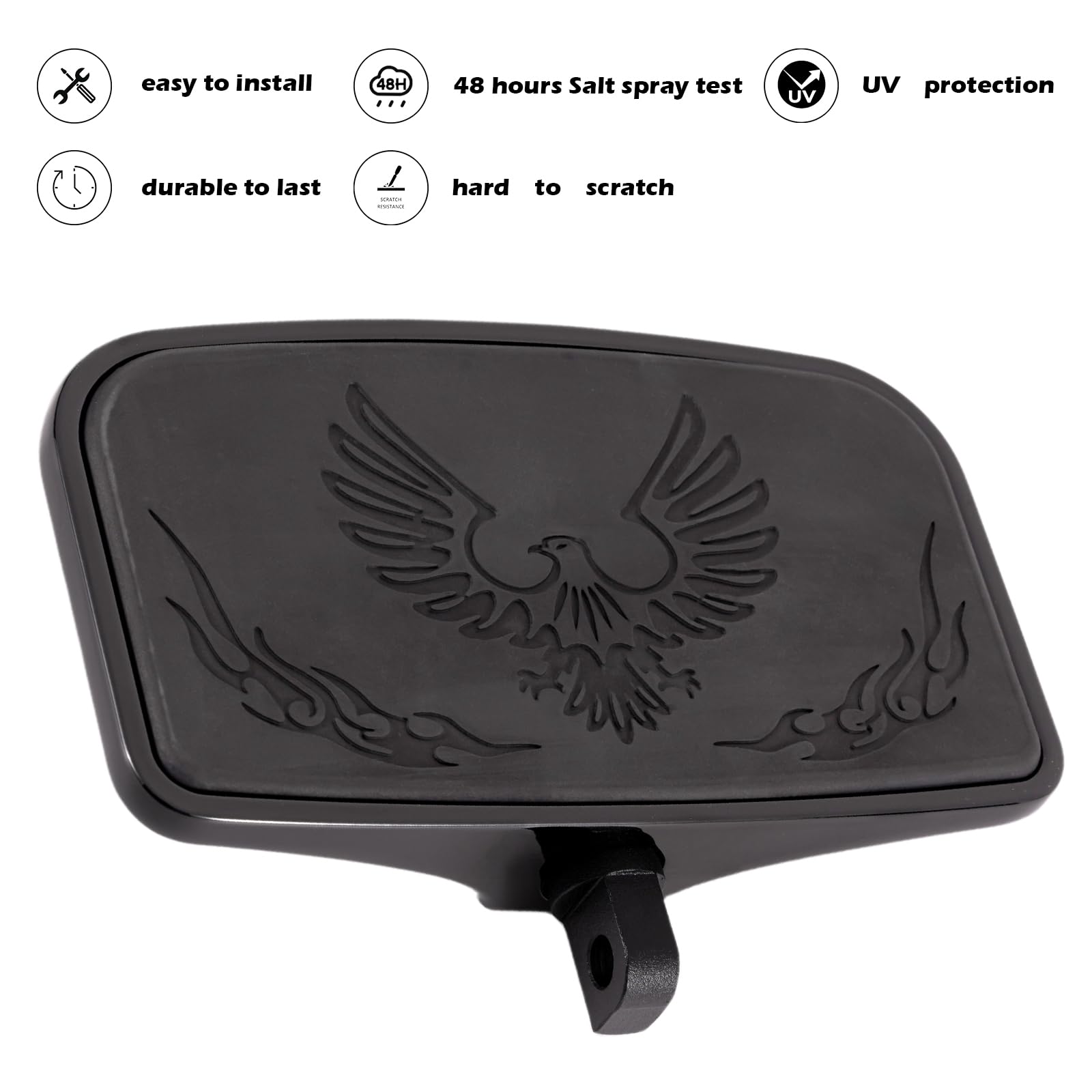 Kinglemc Front Rider Rear Passenger Position Floorboards Footboard Footpeg for Harley Dyna Touring Softail Sportster 883 1200 (Eagle 7.9 * 4.5", Black)