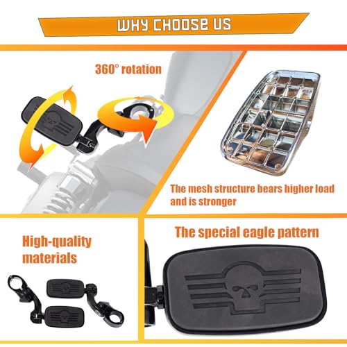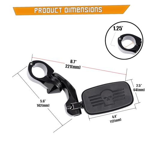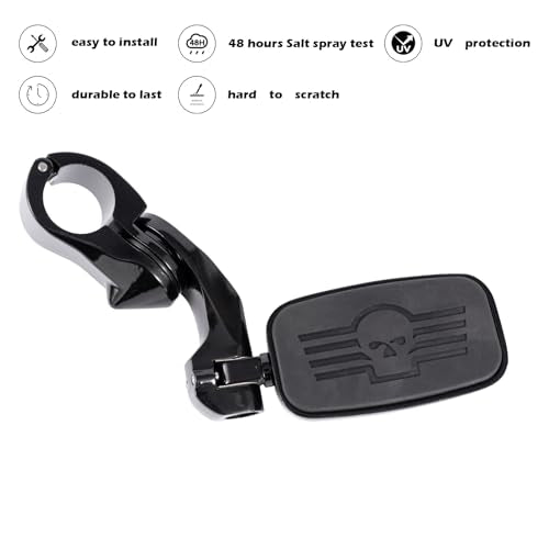 Kinglemc Highway Peg Footpeg Fit 1.25" Adjustable Engine Guard Crash Bar for Harley Davidson, Honda, Yamaha, Kawasaki, Suzuki, Indian, Triumph, Motorcycle(Black-Skull)