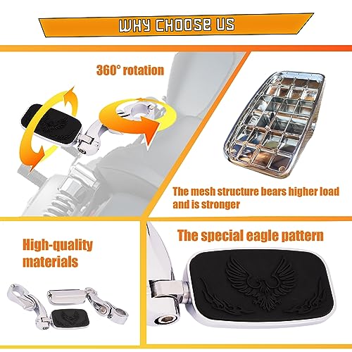 Kinglemc Highway Peg Footpeg Fit 1.25" Adjustable Engine Guard Crash Bar for Harley Davidson, Honda, Yamaha, Kawasaki, Suzuki, Indian, Triumph, Motorcycle(Silver)