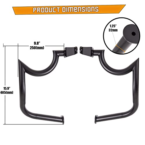 - ▶FEATURES- The engine guard highway crash bar material is a 1-1/4″ steel tube that is thicker than most sellers. All screws are 304 stainless steel.