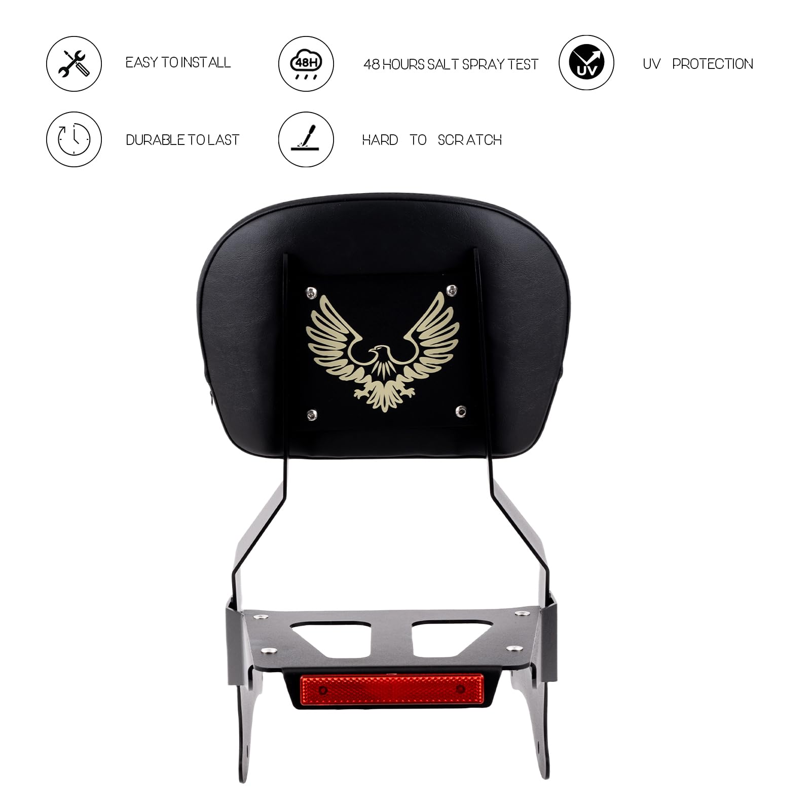 - ➤DESIGN - We designed the eagle-shaped pattern of the backrest connecting plate for the Sissy bar to make your sissy bar more personalized.