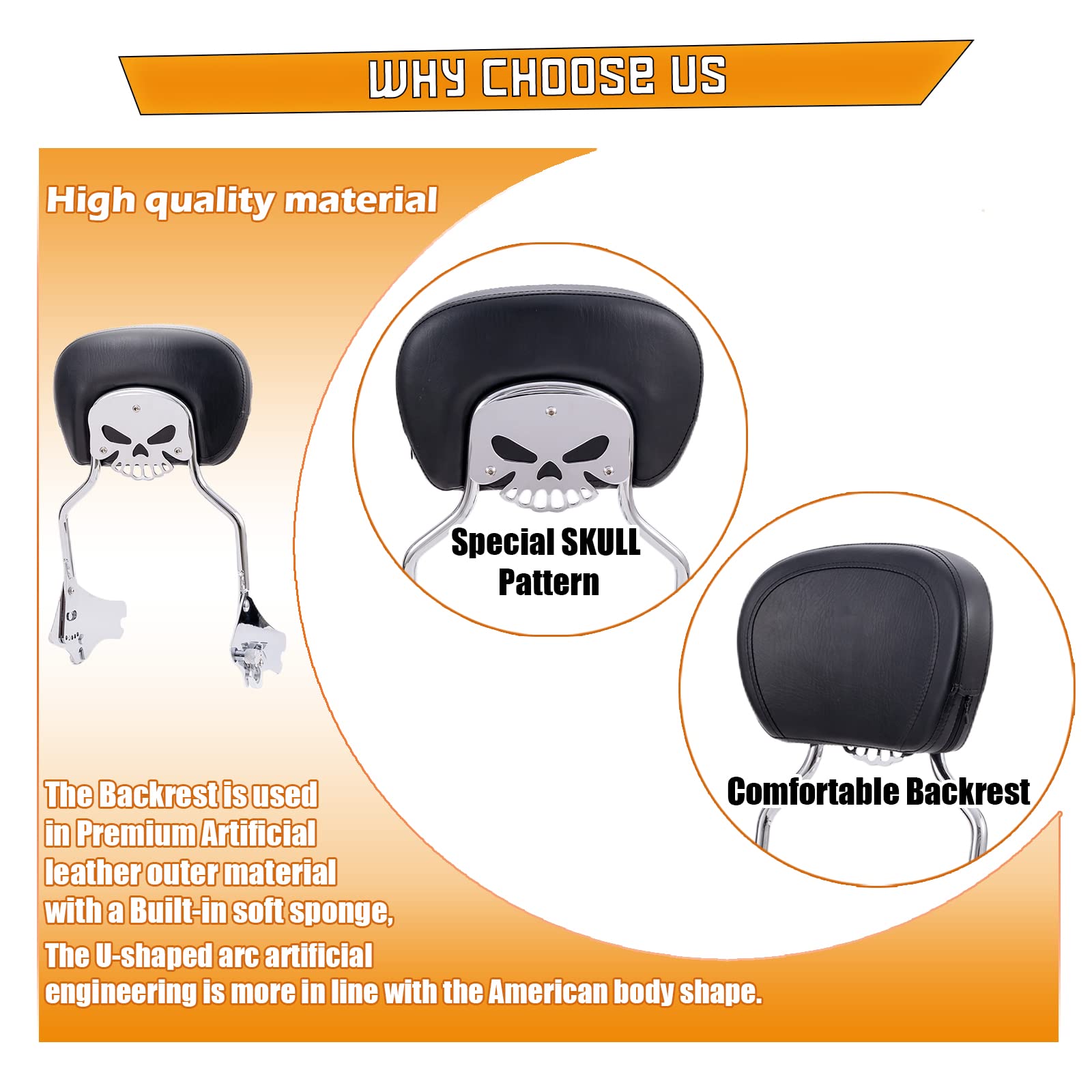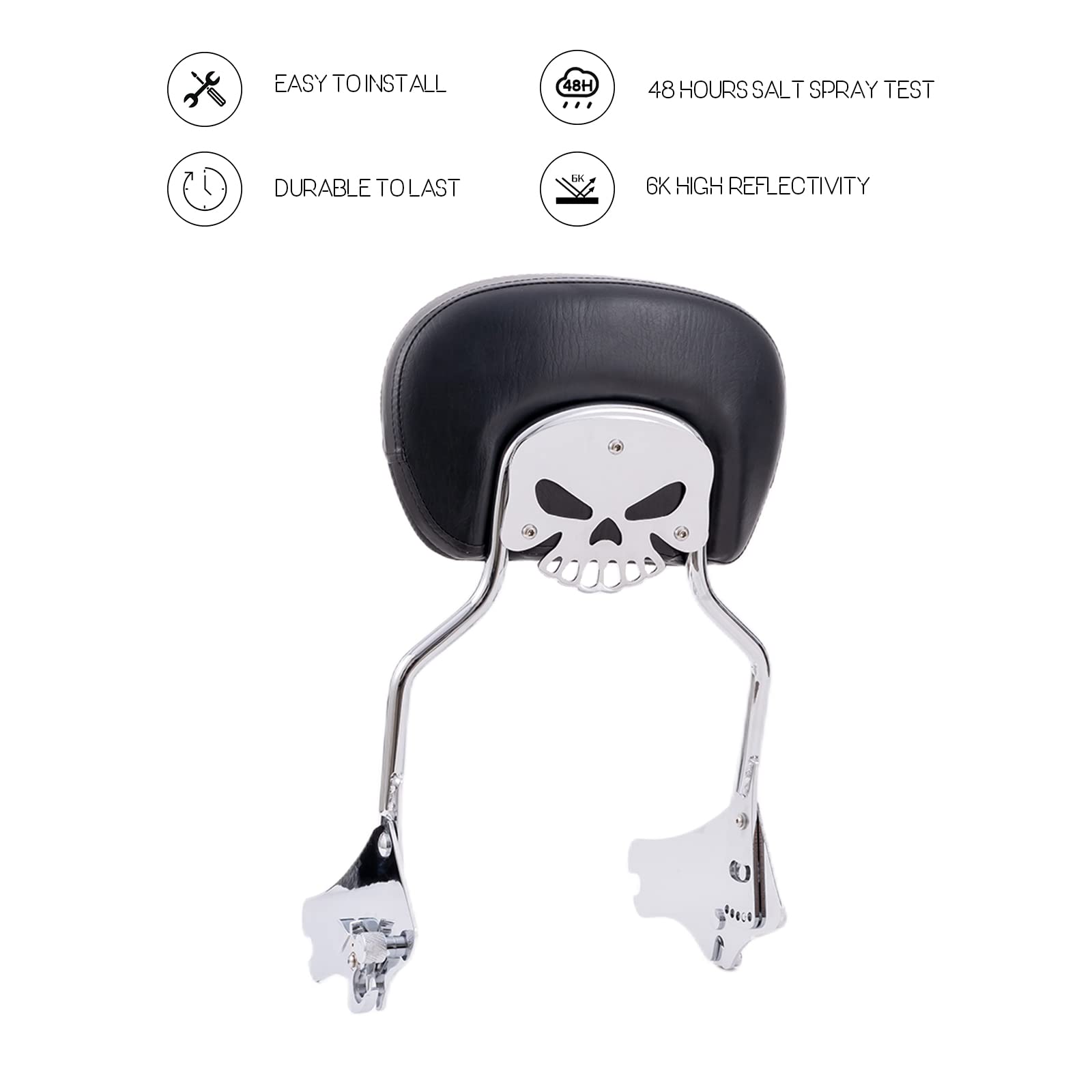 - ➤DESIGN - We designed the skull-shaped pattern of the backrest connecting plate for the Sissy bar to make your sissy bar more personalized.