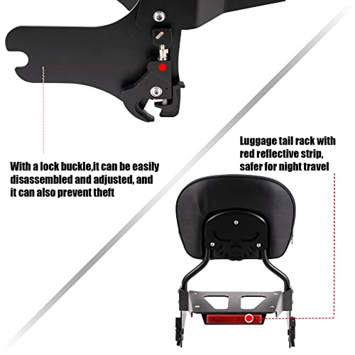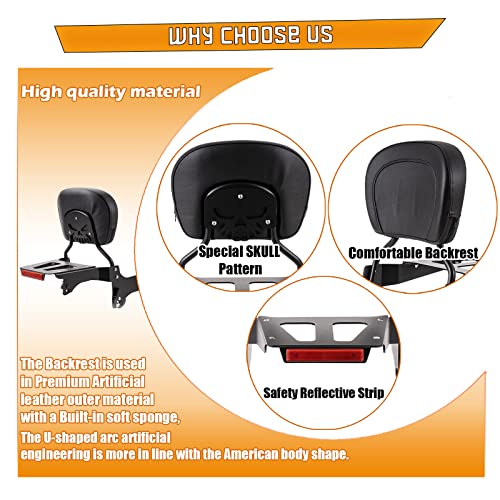 - ➤FEATURES -The backrest provides great support for rear passengers and improves riding comfort on a long touring. The chrome luggage with reflective strips allows you to drive safely in the dark. The Sissy bar material is steel that thicker than most sellers and it passes a 48-hour salt spray test. All screws are 304 stainless steel.